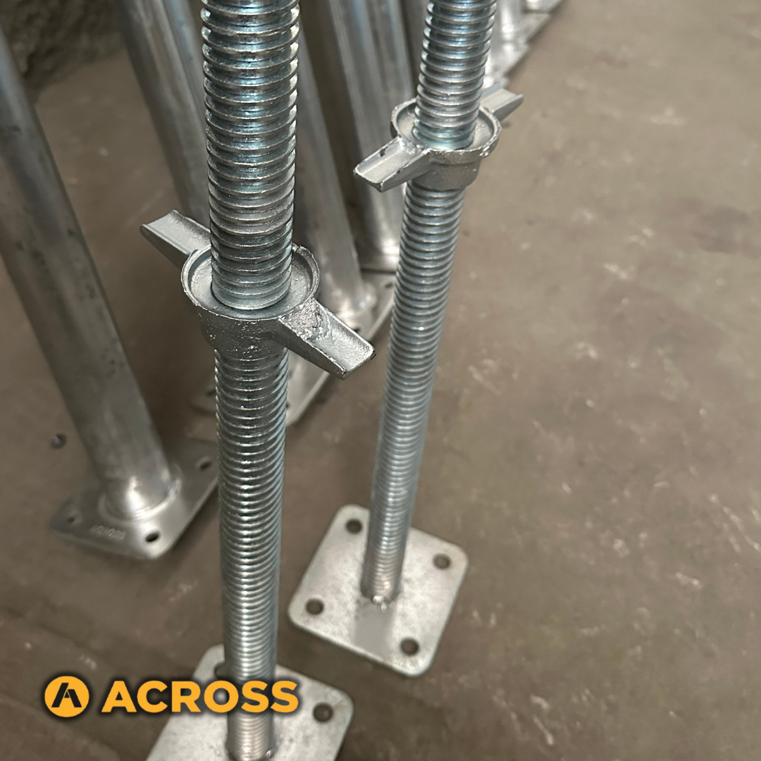 son accesorios esenciales que permiten ajustar la altura y garantizar la estabilidad de la estructura en terrenos irregulares. Aseguran un montaje seguro y preciso en cualquier superficie.
